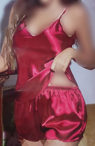 لباس خواب زنانه ساتن قرمز/ تاپ شورتک همراه با تل مو