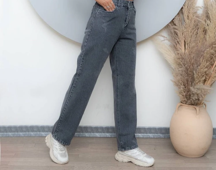 شلوار جین زنانه مدل نیم بگ طوسی